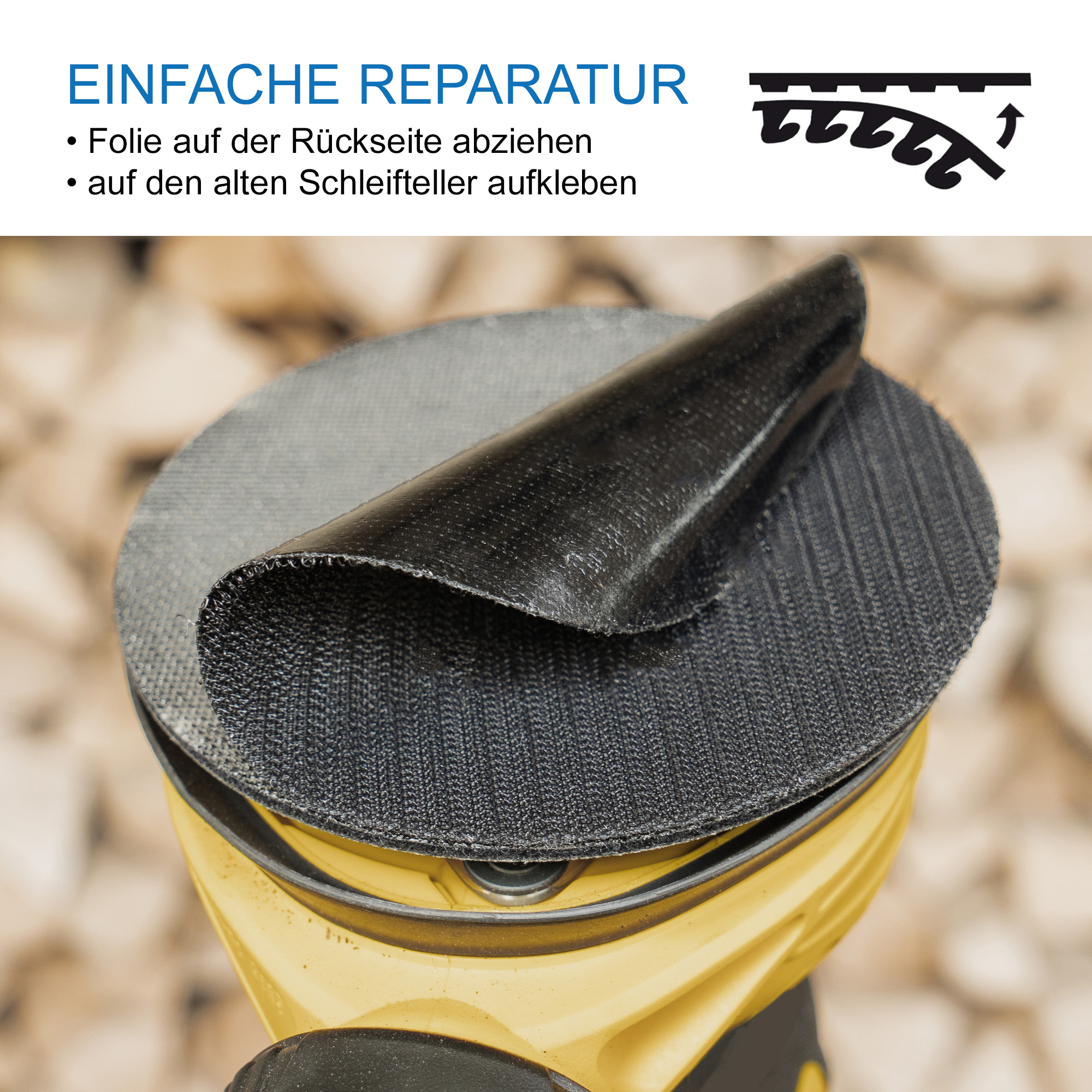 Durch das Ersatzklett wird die Kontaktfläche am Klettschleifteller erneuert.