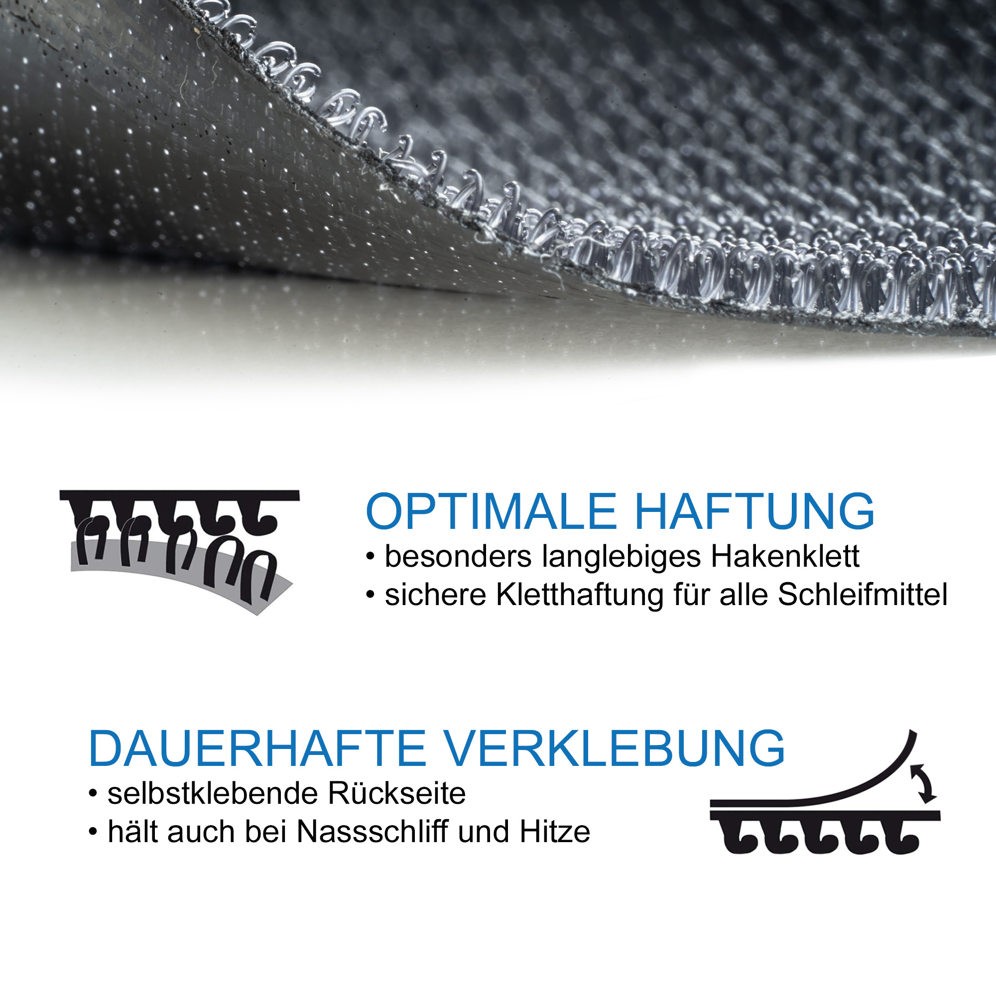 Das Ersatzklett ist ein dünnes Interface welches aus Klett besteht und eine selbstlebende Kontaktfläche auf der Rückseite hat. Die selbstklebende Seite wird auf das alte Klett am Schleifteller aufgeklebt und bietet so wieder die optimale Haftung für das Schleifmittel.